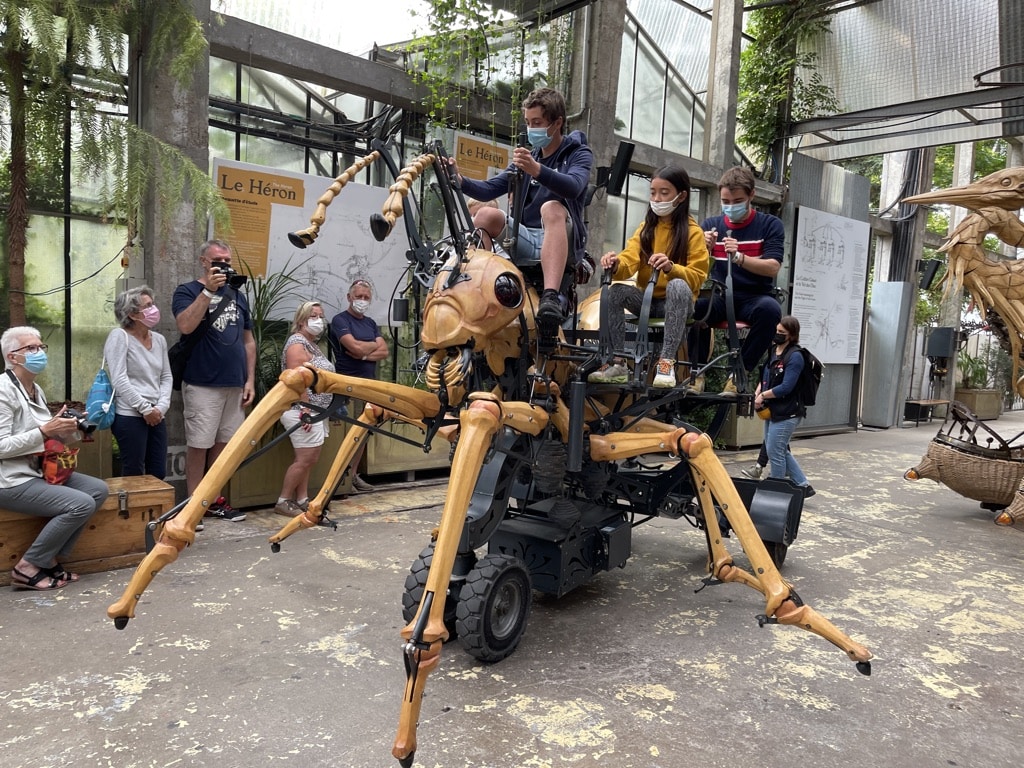 Tout commence à Nantes, sur l’Île aux Machines. Les anciens chantiers navals, désertés depuis les années 1980, trouvent une seconde vie grâce à son imagination. En 2007, le public découvre ébahi le Grand Éléphant : douze mètres de haut, près de cinquante tonnes, avançant majestueusement au rythme d’un pas de pachyderme. À son bord, une cinquantaine de passagers profitent d’une promenade inédite au-dessus des quais.