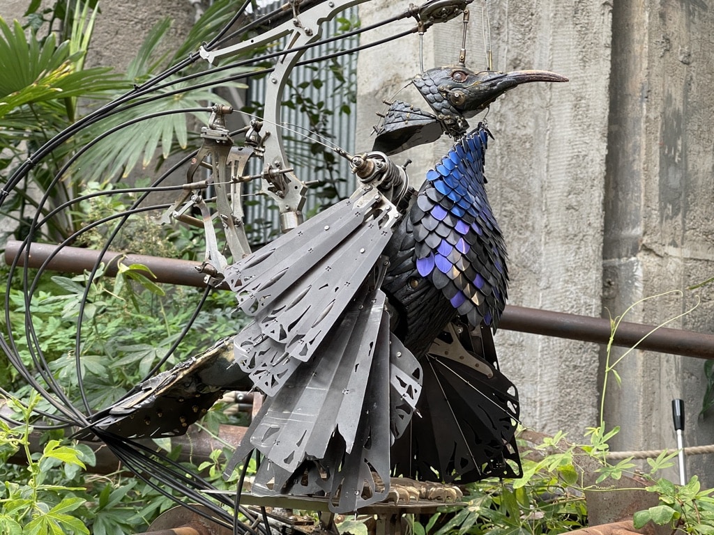 Ses créations empruntent autant à l’ingénierie qu’à la fantaisie. On y retrouve l’héritage de Jules Verne, la précision de Léonard de Vinci, mais aussi l’esprit des grands spectacles de rue. Chaque machine est pensée comme un personnage vivant, doté de mouvements, de souffles, parfois de colères et toujours d’émotions.